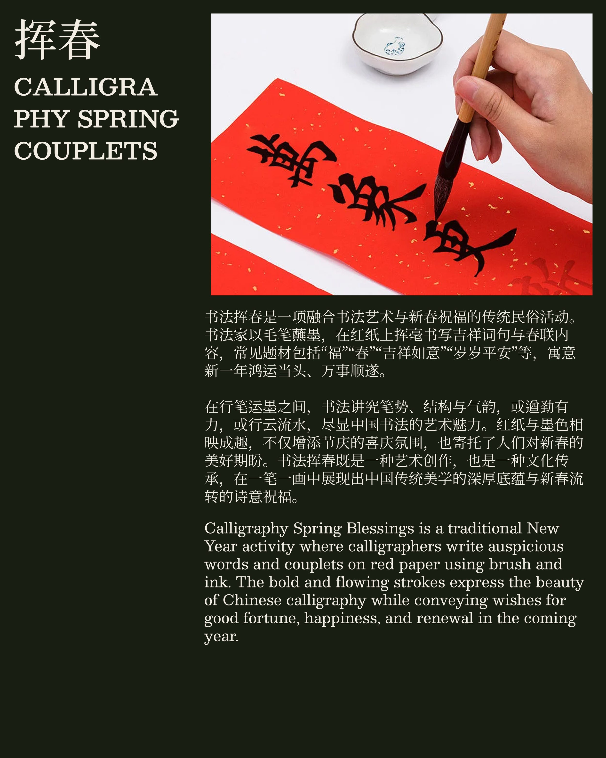 Celebrate the Lunar New Year through the joyful tradition of writing Fu (福). In this hands-on calligraphy session, participants will learn the cultural meaning behind the character Fu and create their own brush-written blessings to welcome good fortune in the year ahead.